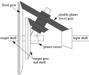 In the first picture, the system is doubled to equalise strain; the second shows the single version. The main thing is that the large gear on the output side (left) is fixed and doesn't turn; it's only there for the planet gears to push against. The whole forms a neat small-space in-line reduction gearing.